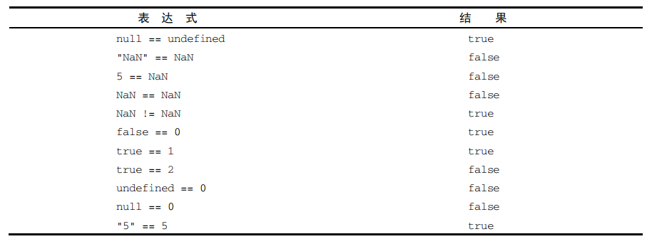 #### 3.5.1 一元操作符 >只操作一个值的操作符叫一元操作符(unary operator)。 1. 递增/递减操作符 ```javascript ++ A; A ++; -- A; A --; ``` 2. 一元加和减 ```javascript A = +A; A = -A; ``` #### 3.5.2 位操作符 1. 按位非:波浪符(~)表示 2. 按位与:和号(&)表示 3. 按位或:管道符(|)表示 4. 按位异或:脱字符(^)表示 5. 左移:两个小于号(<<)表示, 6. 有符号右移:两个大于号(>>)表示, 7. 无符号右移: 3 个大于号表示(>>>), #### 3.5.3 布尔操作符 1. 逻辑非:由一个叹号(!)表示 2. 逻辑与:由两个和号(&&)表示 3. 逻辑或:由两个管道符(||)表示 ```javascript console.log(!false); // true console.log(!"blue"); // false console.log(!0); // true console.log(!NaN); // true let result = true && false; let result = true || false; ``` #### 3.5.4 乘性操作符 1. 乘法操作符:由一个星号(*)表示 - 如果有任一操作数是 NaN,则返回 NaN - 如果是 Infinity 乘以 0,则返回 NaN。 - 如果是 Infinity 乘以非 0的有限数值,则根据第二个操作数的符号返回 Infinity 或-Infinity。 - 如果是 Infinity 乘以 Infinity,则返回 Infinity。 2. 除法操作符:由一个斜杠(/)表示 - 如果是 Infinity 除以 Infinity,则返回 NaN。 - 如果是 0 除以 0,则返回 NaN。 - 如果是非 0 的有限值除以 0,则根据第一个操作数的符号返回 Infinity 或-Infinity。 - 如果是 Infinity 除以任何数值,则根据第二个操作数的符号返回 Infinity 或-Infinity。 3. 取模操作符:由一个百分比符号(%)表示 - 如果被除数是无限值,除数是有限值,则返回 NaN。 - 如果被除数是有限值,除数是 0,则返回 NaN。 - 如果是 Infinity 除以 Infinity,则返回 NaN。 - 如果被除数是有限值,除数是无限值,则返回被除数。 - 如果被除数是 0,除数不是 0,则返回 0。 #### 3.5.5 指数操作符 - ECMAScript 7 新增了指数操作符,Math.pow()现在有了自己的操作符\**,结果是一样的: ```javascript console.log(Math.pow(3, 2); // 9 console.log(3 ** 2); // 9 console.log(Math.pow(16, 0.5); // 4 console.log(16** 0.5); // 4 ``` - 不仅如此,指数操作符也有自己的指数赋值操作符\**=,该操作符执行指数运算和结果的赋值操作: ```javascript let squared = 3; squared **= 2; console.log(squared); // 9 ``` #### 3.5.6 加性操作符 1. 加法操作符:(+) - 如果有任一操作数是 NaN,则返回 NaN; - 如果是 Infinity 加 Infinity,则返回 Infinity; - 如果是-Infinity 加-Infinity,则返回-Infinity; - 如果是 Infinity 加-Infinity,则返回 NaN; - 如果两个操作数都是字符串,则将第二个字符串拼接到第一个字符串后面; - 如果只有一个操作数是字符串,则将另一个操作数转换为字符串,再将两个字符串拼接在一起。 2. 减法操作符:(-) - 如果是 Infinity 减 Infinity,则返回 NaN。 - 如果是-Infinity 减-Infinity,则返回 NaN。 - 如果是 Infinity 减-Infinity,则返回 Infinity。 - 如果是-Infinity 减 Infinity,则返回-Infinity。 - 如果有任一操作数是字符串、布尔值、null 或 undefined,则先在后台使用 Number()将其转换为数值 #### 3.5.7 关系操作符 - 关系操作符执行比较两个值的操作,包括小于(<)、大于(>)、小于等于(<=)和大于等于(>=),用法跟数学课上学的一样。这几个操作符都返回布尔值。 #### 3.5.8 相等操作符 1. 等于和不等于:(==)(!=) 2. 全等和不全等:(===)(!==)  #### 3.5.9 条件操作符 ```javascript variable = boolean_expression ? true_value : false_value; let max = (num1 > num2) ? num1 : num2; ``` #### 3.5.10 赋值操作符 - 见到赋值(=) - 乘后赋值(*=) - 除后赋值(/=) - 取模后赋值(%=) - 加后赋值(+=) - 减后赋值(-=) - 左移后赋值(<<=) - 右移后赋值(>>=) - 无符号右移后赋值(>>>=) #### 3.5.11 逗号操作符 - 逗号操作符可以用来在一条语句中执行多个操作,如下所示: ```javascript let num1 = 1, num2 = 2, num3 = 3; ```