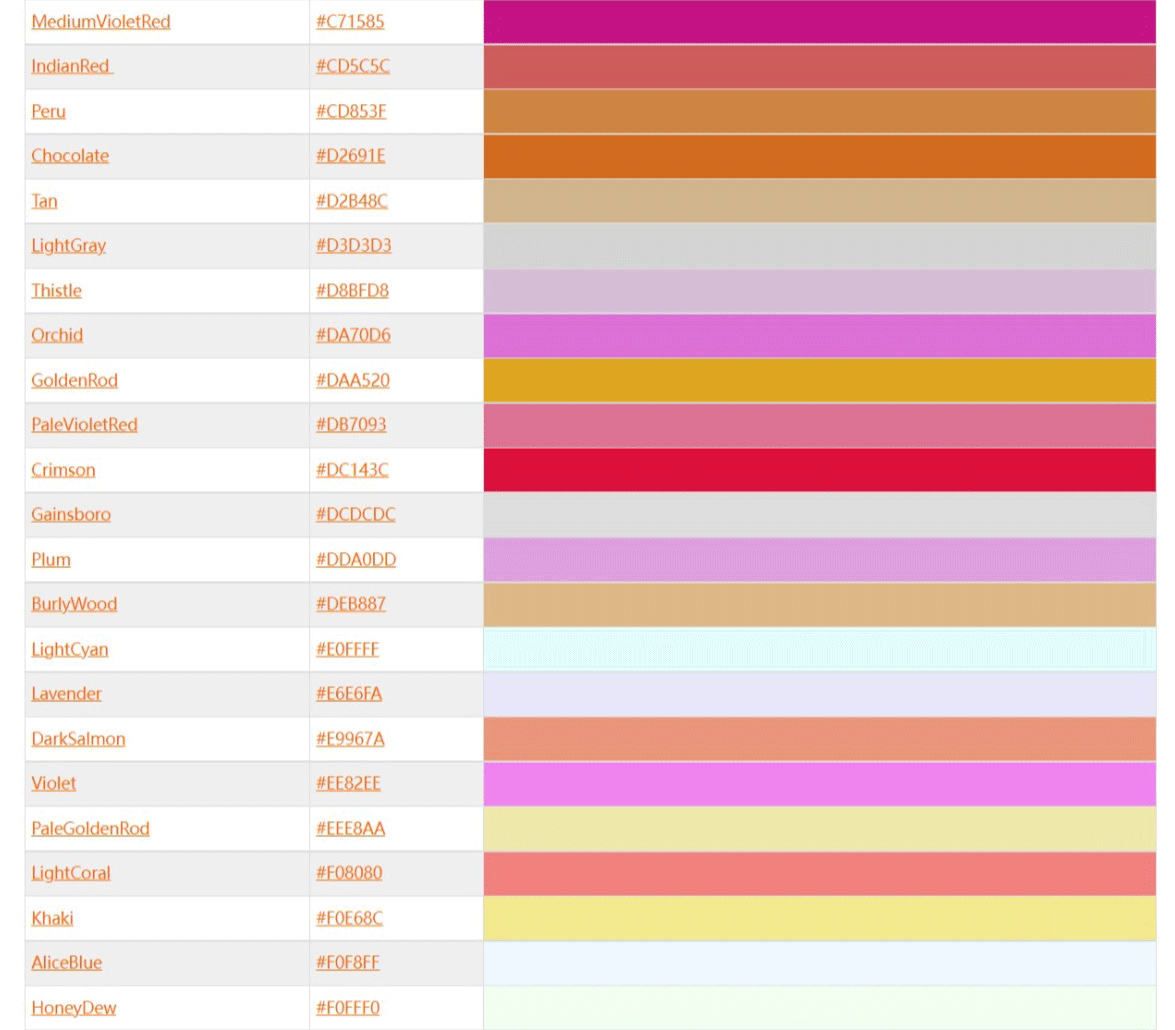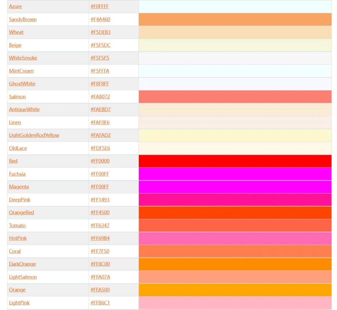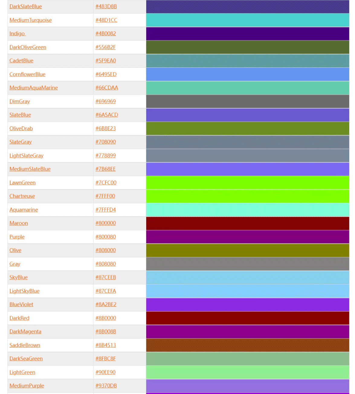 ## CSS 合法颜色值 ##### 十六进制颜色 - 指定一个十六进制的颜色其组成部分是:#RRGGBB,其中RR(红色),GG(绿色)和BB(蓝色)。所有值必须介于0和FF之间。 - background-color:#ff0000; ##### RGB颜色 - RGB颜色值指定:RGB(红,绿,蓝)。每个参数(红色,绿色和蓝色)定义颜色的亮度,可在0和255之间,或一个百分比值(从0%到100%)之间的整数。 - 例如RGB(0,0,255)值呈现为蓝色,因为蓝色的参数设置为最高值(255)而其他设置为0。 - 此外,下面的值定义相同的颜色:RGB(0,0,255),RGB(0%,0%,100%)。 - background-color:rgb(255,0,0); ##### RGBA颜色 - RGBA颜色值是RGB颜色值alpha通道的延伸 - 指定对象的透明度。 - RGBA颜色值指定:RGBA(红,绿,蓝,alpha)。 Alpha参数是一个介于0.0(完全透明)和1.0(完全不透明)之间的参数。 - background-color:rgba(255,0,0,0.5); ##### HSL色彩 - HSL代表色相,饱和度和亮度 - 使用色彩圆柱坐标表示。 - HSL颜色值指定:HSL(色调,饱和度,明度)。 - 色相是在色轮上的程度(从0到360)-0(或360)是红色的,120是绿色的,240是蓝色的。饱和度是一个百分比值;0%意味着灰色和100%的阴影,是全彩。亮度也是一个百分点;0%是黑色的,100%是白色的。 - background-color:hsl(120,65%,75%); ##### HSLA颜色 - HSLA的颜色值是一个带有alpha通道的HSL颜色值的延伸 - 指定对象的透明度。 - 指定HSLA颜色值:HSLA(色调,饱和度,亮度,α),α是Alpha参数定义的不透明度。 Alpha参数是一个介于0.0(完全透明)和1.0(完全不透明)之间的参数。 - background-color:hsla(120,65%,75%,0.3); ## CSS 颜色名称