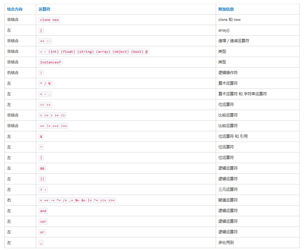 >在线表格地址:http://tool.oschina.net/commons #### 7.1 HTTP状态码  #### 7.2 运算符优先级