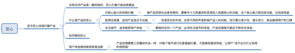 能一路成长的产品背后,一定有无数看不见的兢兢业业。 以微信为例,微信的产品经理很厉害,一下就知道产品该怎么做,事实上并非如此,没有任何产品是一蹴而就的。在讨论朋友圈的形式时,微信团队做的非常辛苦。为了更贴近用户需要,团队每天都在讨论各种可能,模拟各种场景,反复PK演练。经过一轮一轮的否定重来,才逐渐演化成现在我们看到的样子。微信团队对每一个内部版本,使用英文字母A、B、C进行编号,版本之多,最后26个字母不够用,还用上了罗马字母,总共有三十几个版本。  ### 第一版产品,也许都不完善,匠心打磨才能成就精品。 什么是产品的匠心?如何做到匠心?我们分享三个方面。  首先,匠心是专注,是对核心能力的持续打磨。 做产品资源永远是有限的,要集中火力,把最重要的资源投入到最核心的能力。这个核心能力,既包括功能,也包括性能。 我们看看国民产品QQ的例子。作为即时通信软件,音视频通话功能是QQ的核心功能之一,自99年推出以来,QQ团队围绕多种通话场景,不断打磨通话体验。比如多人通话场景下,如何方便的添加参与者。过程中如何做到语音、视频及屏幕分享能力的自然切换。亲子场景下,小朋友喜欢拍屏幕,如何巧妙设计既能有儿童锁功能又能防止大人误触。此外,QQ还是国内第一个推出实时视频美颜功能的产品,围绕美颜功能,先后推出了3个版本,做了很多细节打磨。磨皮功能自动识别人脸,美颜面部的同时不影响背景的清晰度,美颜的亮度也会根据肤色自动调节,让皮肤的光更加真实。  传文件也是QQ的基础功能之一,虽然功能简单但对性能要求极高,团队投入了大量技术力量不断提升文件传输的速度和稳定性。 从PC到移动互联网时代,传文件面临更高的技术挑战,既要解决跨端传输问题,电脑、Ipad、手机等多终端如何互传,也要解决网络切换和跨网传输的问题。在WIFI,运营商网络,甚至短时断网的多种网络环境下,如何保证传输速度和流畅性。经过持续多年的优化,QQ传文件基础成功率从12年的一个9(90%),提成到两个9(99%),再到现在的接近三个9(99.9%),小数点后每一个点的提升都凝结了技术人员无数的心血。核心能力上的持续投入,使传文件成为QQ最亮点的功能之一,也是国内到目为止最快最稳定的文件传输工具。 ### 其次,匠心是耐得住寂寞,是坚持产品信念不动摇。 快速变化的市场,总有不同的声音影响产品人的判断,但只要认准方向,埋头苦干,就会赢得用户的口碑。 【案例】手机QQ浏览器专注打磨核心功能:效率工具。 来自产品经理阿童木的分享:2010年,QQ浏览器正式发布,首批用户的积攒用了一个很巧妙的方法,就是当时跟最火的QQ农场和QQ牧场合作,实现QQ浏览器对农牧场的用户可以实现一键偷菜,成功的模式快速积累了首批的用户。 问题在于:在浏览器领域,跟竞争对手比差很多。 2012年安卓市场爆发,用户会选择用脚投票。而那个时候,所有的互联网公司都在做浏览器品类,我们到底靠什么来抢占我们的用户心智:夯实QQ浏览器是一个专业浏览器的认知。团队经历了多轮讨论,PK,收敛,认识到浏览器品类核心其实是一个效率工具,如果我们要想把这个效率工具做好,就必须在效率工具上下功夫。 后来做了一系列的目标拆解:定义用户访问网页的首字首屏的速度;定义用户访问网页节约多少流量。在这些模式下,促进QQ浏览器进行一个新的升级。模式很有效,形成了一个不成文的规定,我们的产品需求如果功能影响了这些核心能力的话,是不允许发布和上线的。相信很多团队都有这种模式和方法,难在我们坚持下来了。 2013年,浏览器市场进入到白热化状态,各家浏览器都在做自家五花八门的抢用户的方式,我们内部的生意是说,QQ浏览器有没有可能做一些特别的东西,回过头来想,我们坚持了初心,把最核心的资源和人,都投入到了核心性能和内核上面。2014年,浏览器的核心性能已经碾压竞争对手,内核在H5跑分标准速度上,和省流加速的比例上超过竞争对手,成为行业领跑者。 有了结果之后,后面做了一次用户调研,很多用户会主动跟我们说浏览器的一些印象,我们看到几个关键词:UI很清新,速度很快,效率产品等等,真真收获了用户的口碑和认可度。 后来的故事大家都知道了,QQ浏览器引领了整个品类,用户规模也超过了竞争对手,得到了公司名品堂的认可,内核走了出来,服务了微信,手机QQ及2万多款APP,每天有6亿用户200亿的PV。 回过头发现,产品还是应该坚持自己的信仰,你愿不愿意持续耐得住寂寞,愿不愿意持续在你的核心性能里面去打磨,这就是我们所说的匠心精神吧。 ### 第三,匠心是关注细节,追求极致用户体验。 在腾讯,要做好任何一个产品,必须关注细节的体验,产品经理每天都在不断优化体验。小马哥,张小龙这样的公司高管也会花大量的时间反复推敲体验的细节。  开头提到的微信朋友圈,也是一款处处追求极致用户体验的产品。来看一个小例子,拿出你的手机,打开朋友圈,选择一条朋友的消息,点击右下角的评论按钮,弹出一个小框可以选择赞和评论。你有没有注意到,这个小框出来的时候,会谈到左边再回来一点点,这个很小的细节,其实在模拟自然界的反应。自然界没有任何东西运动时会突然静止,碰到边界会“抖”一下,这个小到用户可能注意不到的细节,却在潜意识里让用户觉得很舒服。体现了产品经理在细节中的体贴。 朋友圈