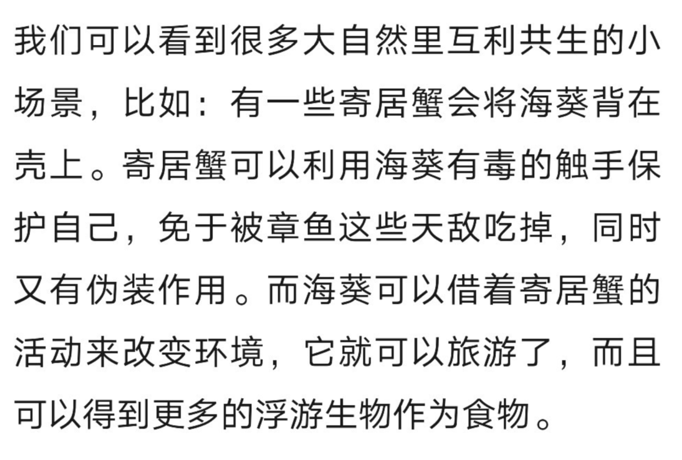 ##### 夹缝求生中的自我探索与长期关系 - 大自然的共生机制  - 大家一般会羡慕别人有这样的特殊关系,好像凭空就比自己多了安全和武器。但你要想,寄居蟹个海葵的共生关系,不知经历了多长时间的探索。彼此不断探索对彼此的特性、价值、自己的担负能力、伤害自己的可能性。。。。最后寄居蟹背起了海葵,背起这个重量的同事改变了自己的处境,并把这个判断写进了族群的基因里,才有我们现在看到大自然现在的这一幕。 ##### 价值观判断游戏 - 写下你最钦佩的人的名字 - 在名字后面列出钦佩他们特性 - 把这九点进行排序,就大概可以看到你自己的价值观列表 - 价值观即道路。价值观就是每一个微小的动作,累计成你人生的一切。 ##### 自我探索 - 没有什么长期关系,是未经自我探索,不经过价值观判断,就可以在大马路上捡到的。 - 探索更多的环境和更多的关系,就是人生的必经 - 共生关系是生命的互动,不是按照规则走流程。 ##### 思考 - 过去7年的时间里,对你影响最深的一个人是谁?