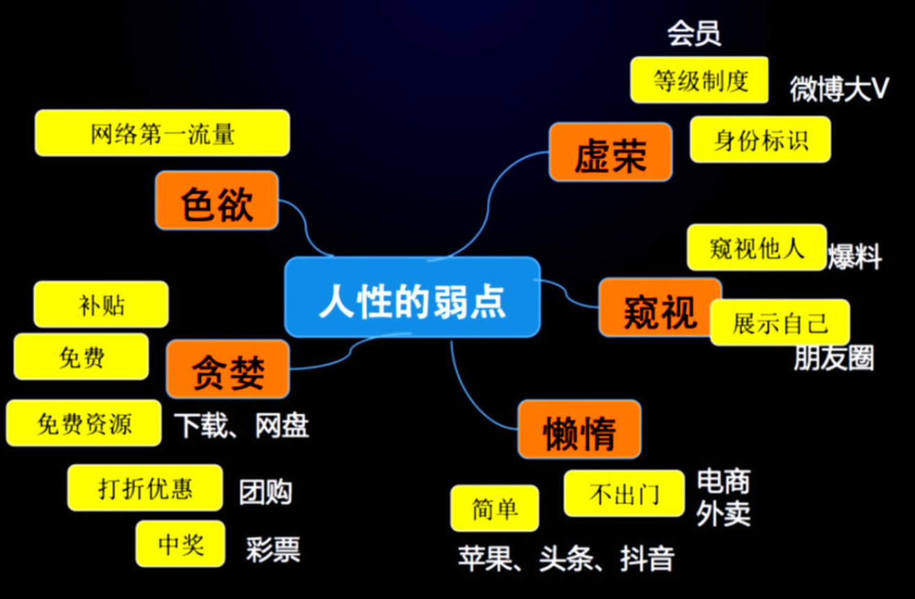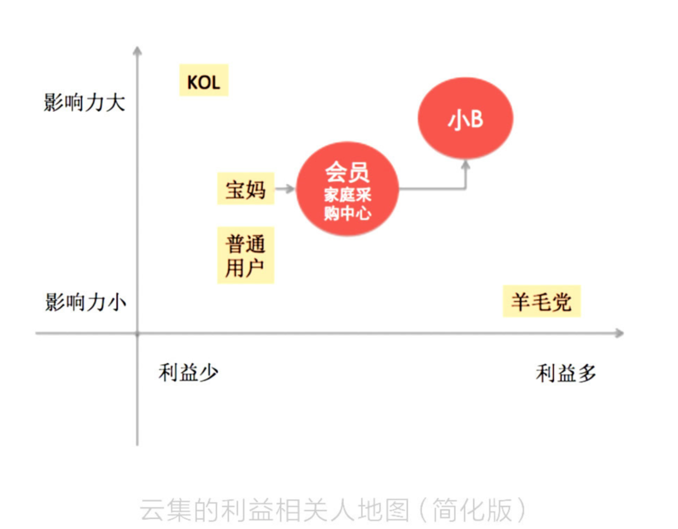 ##### 人性的弱点  - 人性的弱点推动了互联网的流量,但人性的光明构筑了商业的文明。 - 互联网产品受欢迎,就是因为用户能够在这里找到现实生活中难以获得的东西。在现实生活中,大家需要压抑、要绷着和要撑着的东西,在互联网所提供的这些服务中,可以得到安放。 ##### 理解用户的三种重要感受 - 自卑感:自卑感的反面不是自信 - 优越感:让人生产优越感的用户体验,都是用户感觉好的体验。 - 成就感:不要匹配你老妈去抢购打折商品,那个不是贪小便宜,那个是你老妈的成就感。 ##### 用户关系的深度如何递进? - 你当他是流量的时候,他当你是资源。流量和资源之间,只有交换,关系非常浅。 - 当你理解他,他在你这里得到的除了资源,还有感受时,他就可能会成为你的用户,关系深度就会深一点。因为资源其实到处都可以替代,而感受是一种微妙的东西,匹配不容易。 - 用户关系从浅到深的四个深度 - 流量要资源 - 用户要感受 - 会员要归属 - 共同体需要责任 ##### 云集的崛起 - 微商有利润之余,手里还沉淀了三种能力 1对某类用户的感知和认知 2某类产品的供应链关系 3优于传统企业的电商能力,甚至有的微商自己搭建了IT系统、商场系统。 - 有现金,有能力,因此微商当时可能有三种演化方向 1把自己提升为专业品牌 2做产品中台,为缺乏产品和供应链能力的流量口供货 3把自己升级为平台 - 当流量红利过去时,微商忙着去找新流量的时候,云集上市了 一开始云集看到微商的红利,他就选择不卖货,运营人,服务微商,做平台。 第二步,他发展中台能力,为它的会员,也就是小B(微商)提供产品和供应链服务。 第三步,推出自有品牌,比如素野。然后用独家产品巩固会员关系,调整公司利润。 - 云集的利益相关人地图  - 云集升级的是基于互联网的全网能力优化。比如云集提供“六朵云”,包括内容、IT系统、培训、客服、物流、供应链,非常方便地让每个云集宝妈可以成为云集的代言人,她只需要用心地运营自己的私域流量,选品、海报、订单、仓储、售后都有专业的部门帮她去做处理。 ##### 小结 - 今天利用人性的弱点,贪嗔痴依然可以引发巨大的流量,但是浅薄的关系来的快,去的也快。 - 而在今天,数据化、标签化、信用化程序越来越深,依靠信用和责任的力量,才有可能打造深度关系的共同体,在激烈的竞争里,彼此守护,守住你的地盘。